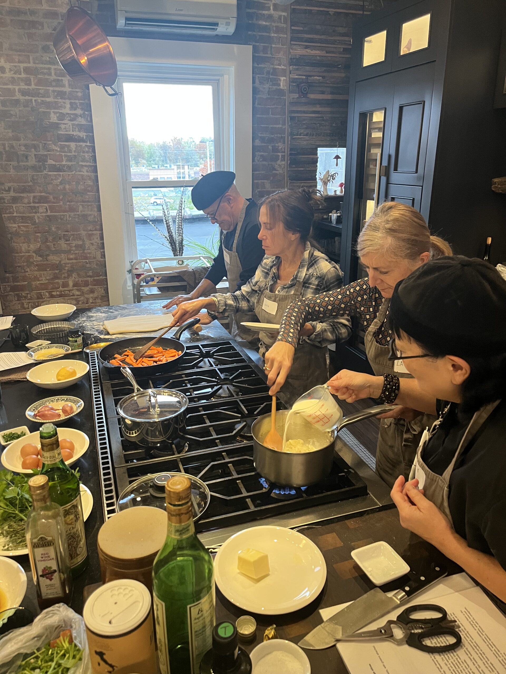 Classes are taught by chef Tess Kelly in the Hudson Valley, New York City, and in France. They are hands-on and lots of fun! She offers in-home private classes as well as group classes.
